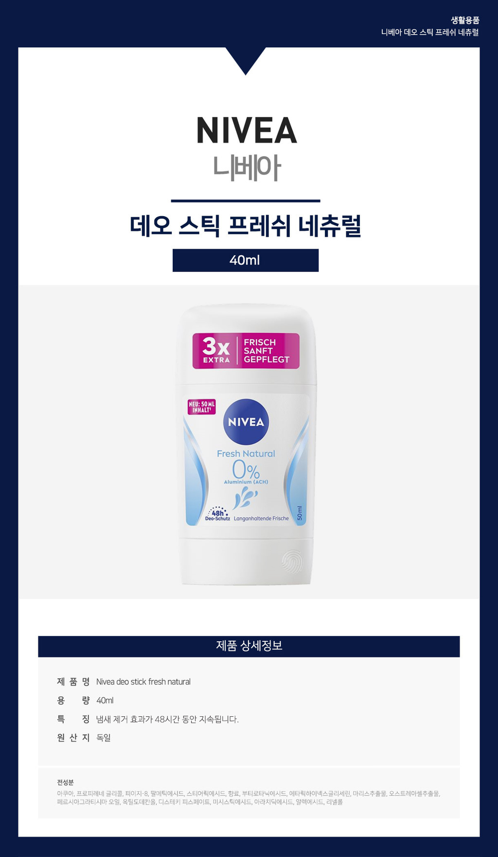 Nivea deo stick fresh natural 50ml