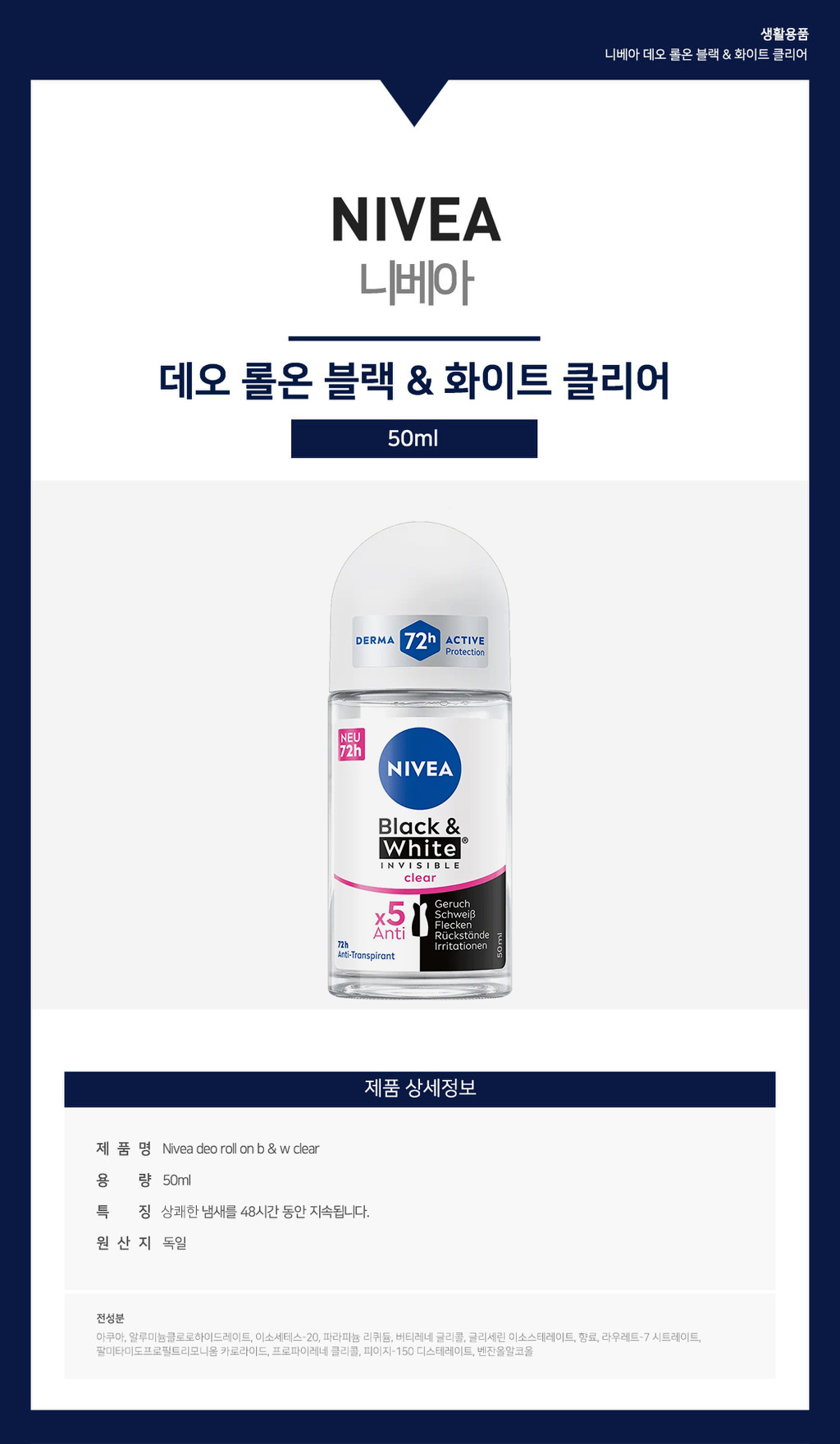 Nivea deo roll on b & w clear 50ml